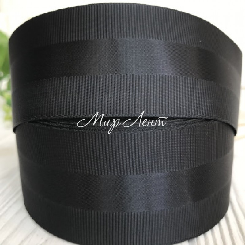 Репс із атласною смугою, 4 см, чорний, метр