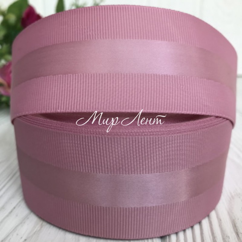 Репс з атласною смугою, 4 см, пудровий, метр