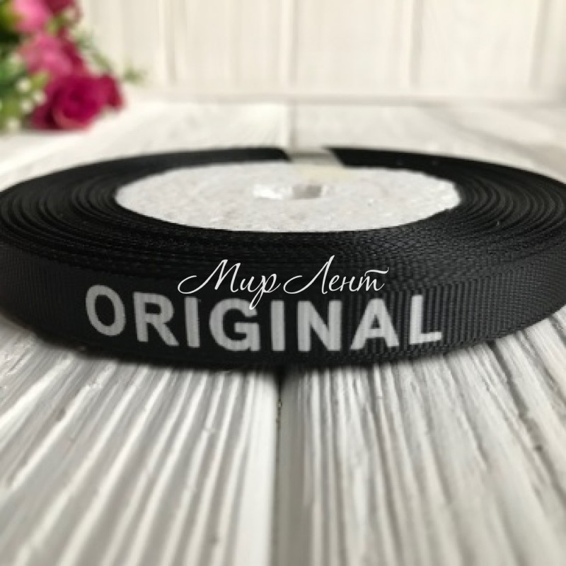 Репс із написом ORIGINAL, 1 см, чорний, рулон 23 м