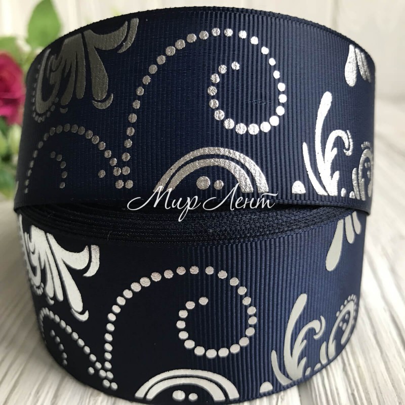Репс із вензелями, 4 см, сапфіровий (срібло), метр