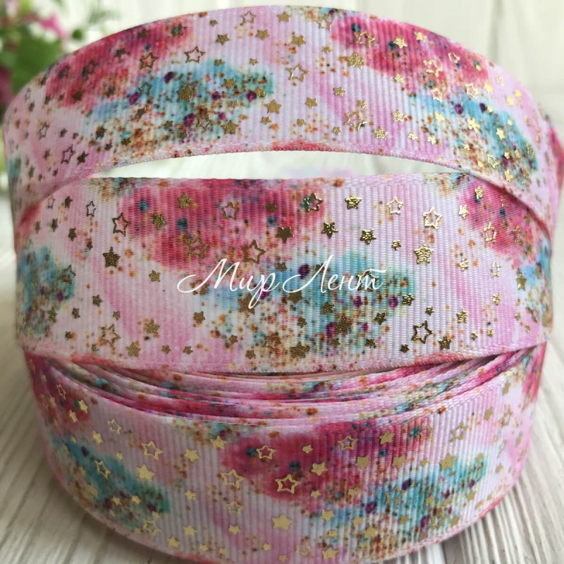 Репс із зірками (фольга), 2,5 см, рожево-м'ятний, метр
