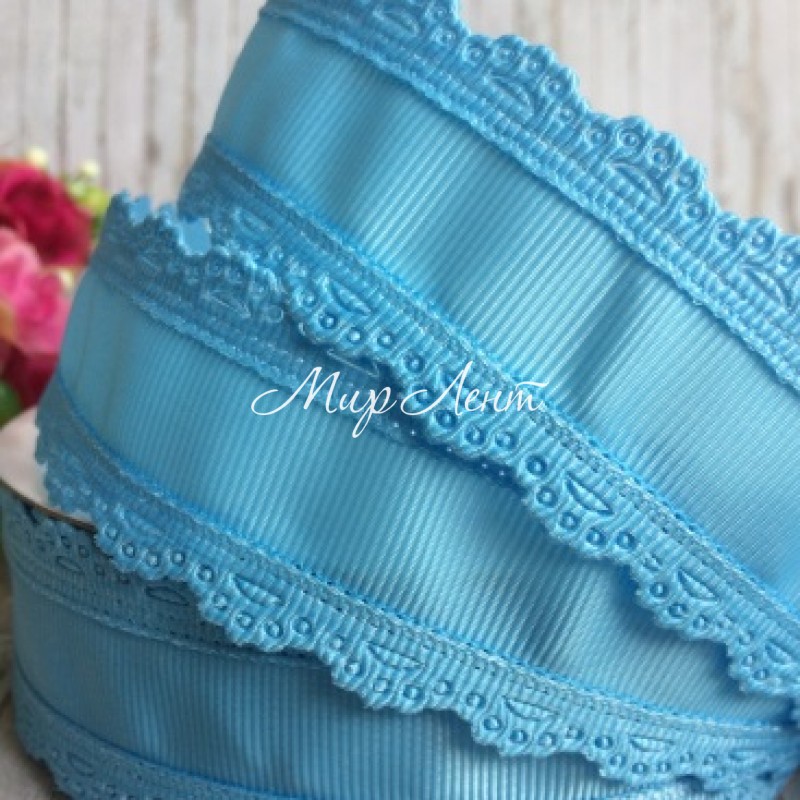 Репс з ажурним кантом, 3,5 см, світло-бірюзовий.