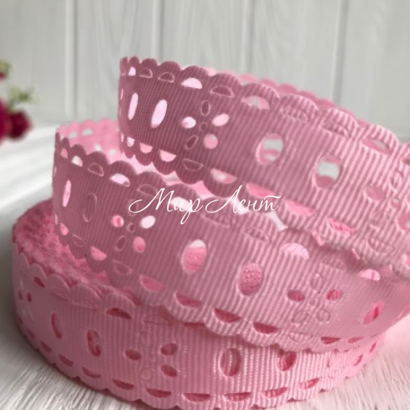 Репс з перфорацією, 2 см, світло-рожевий (квіточка)