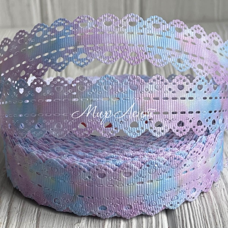 Репс з перфорацією серце, 2,5 см, пастельний омбре, метр