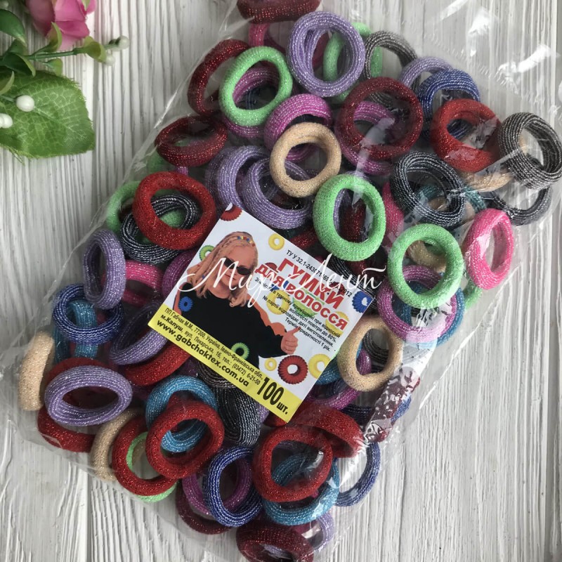 Гумка Калуш з люрексом, 2,5 см, пастельний мікс, упаковка 100 шт.