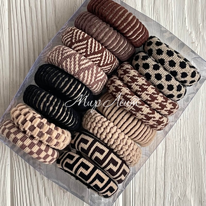 Резинка в коробці (візерунки), 4,5 см, коричневі тони, упаковка 16 шт.