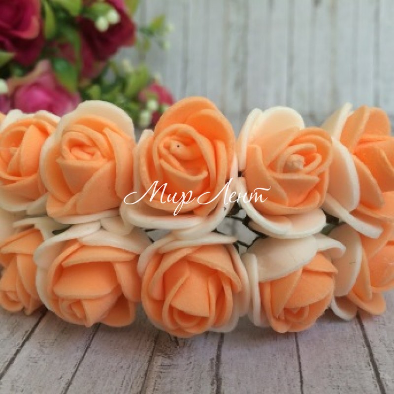 Троянда 2,2 см, біло-темно-персикова, 12 квіточок у пучку