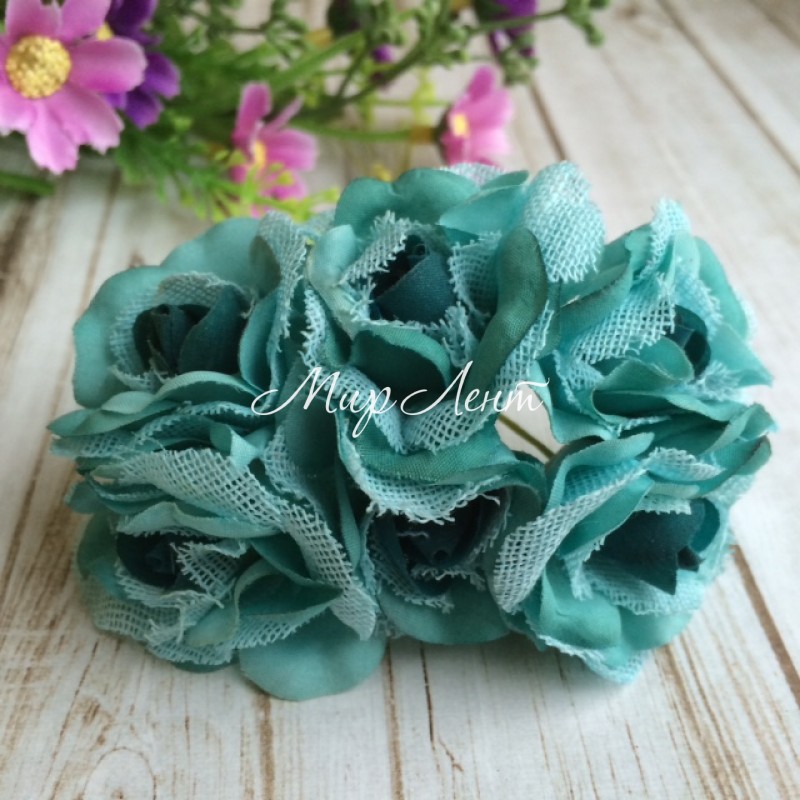 Роза с тканью, 3,5 см, мятная