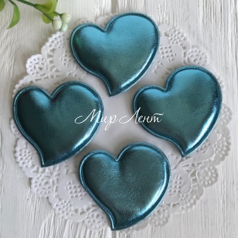 Аппликация/патч, сердечко (экокожа), 4,7 см, бирюзовый