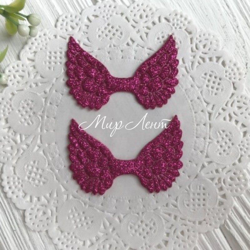 Аппликация крылышки с глиттером, 4,8х3,5 см, малиновый, шт.