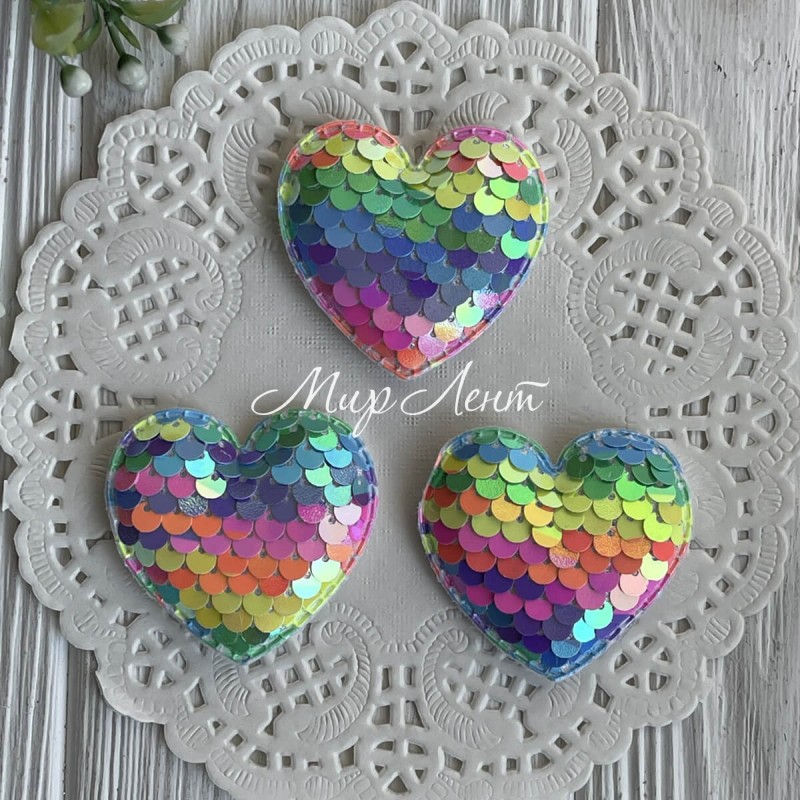 Аппликация сердечко с паетками среднее, 4,5х4,5 см, цветной микс, шт.