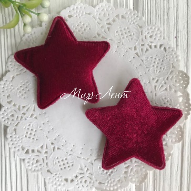Аппликация велюровая звездочка, 5,5 см, бордовый, шт.