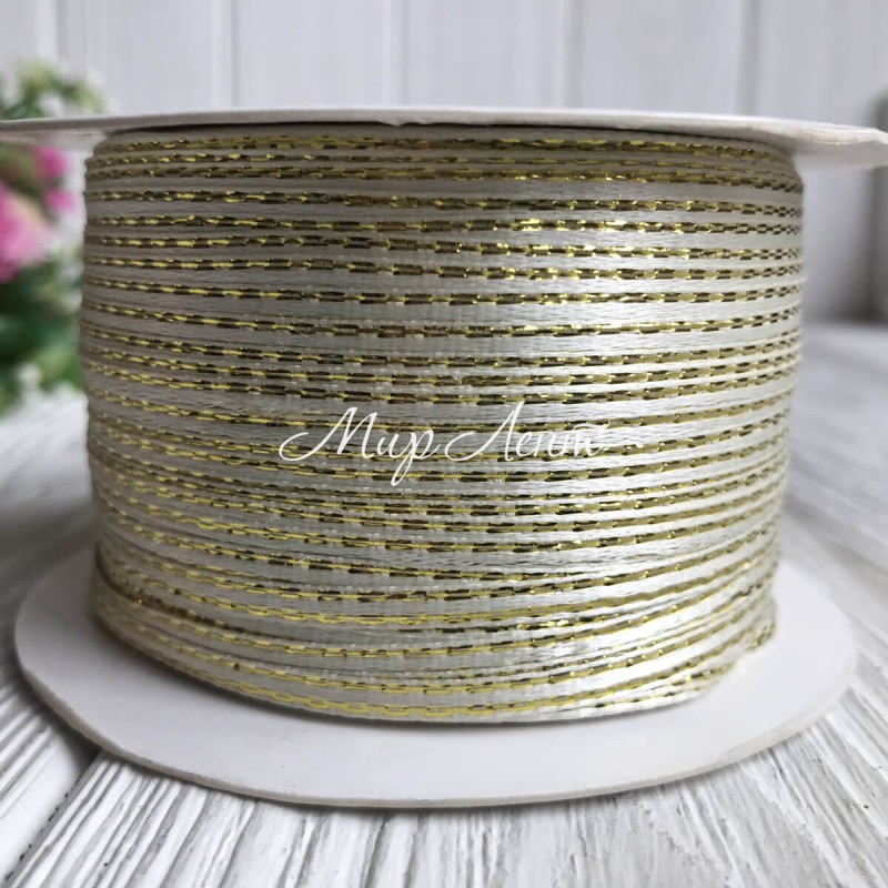 Атлас 0,3 см люрекс золото, айвори, рулон 225 м
