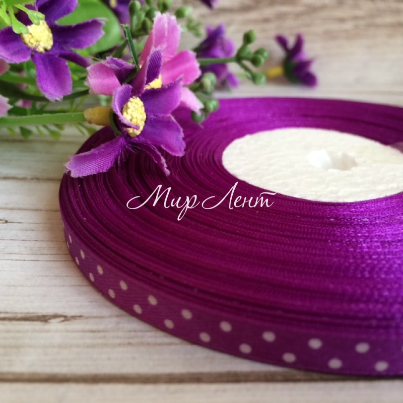 Атлас 0,6 см горох, темно-фиолетовый, рулон 45 м