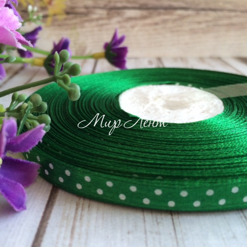 Атлас 0,6 см горох, зеленый, рулон 45 м