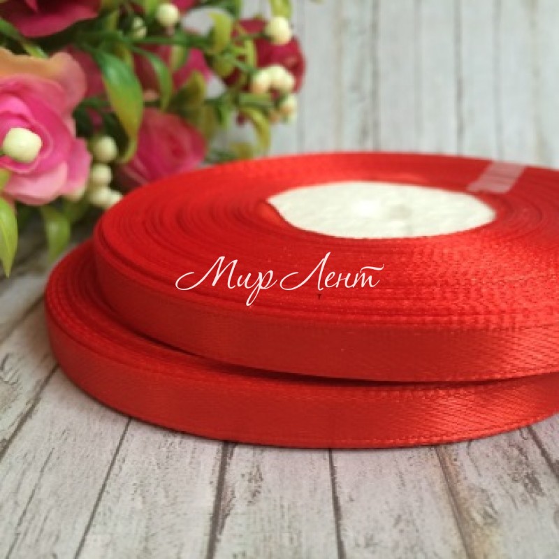 Атлас 0,6 см, красный, рулон 33 м