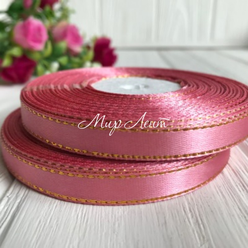Атлас 0,9 см люрекс золото, пудровый, рулон 33 м