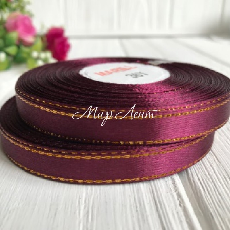 Атлас 0,9 см люрекс золото, вишневый, рулон 33 м