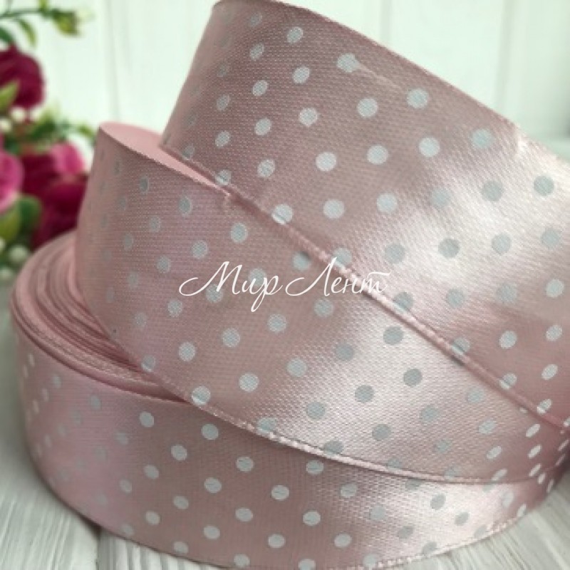 Атлас 2,5 см горох, пудровый