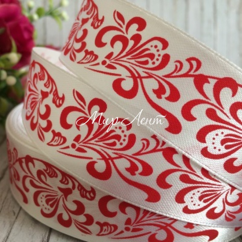 - Код товара: Атлас 2,5 см, орнамент, бело-красный