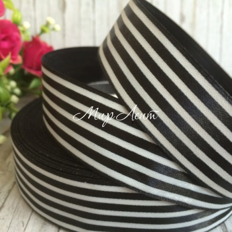 Атлас 2,5 см, полоса, черный