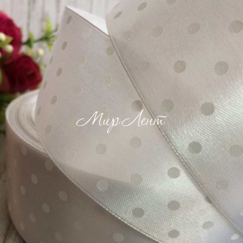Атлас 4 см горох, белый, метр