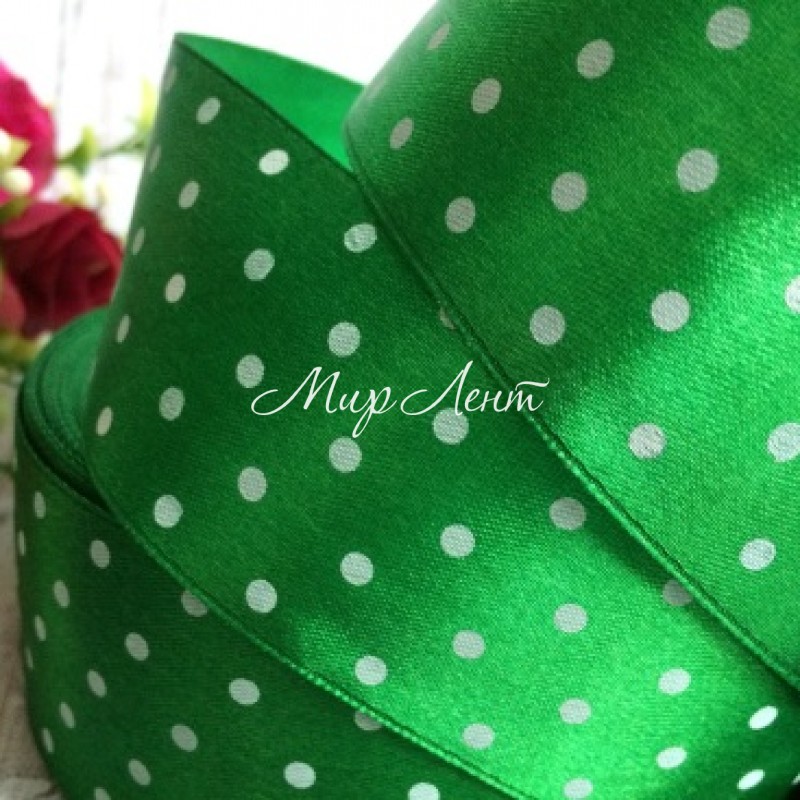 Атлас 4 см горох, зеленый, метр