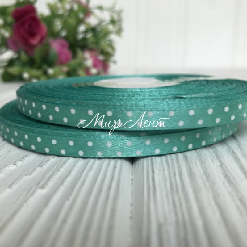 Атлас 0,6 см горох, морская волна, рулон 45 м