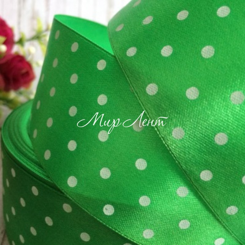 Атлас 4 см горох, средне-зеленый, метр