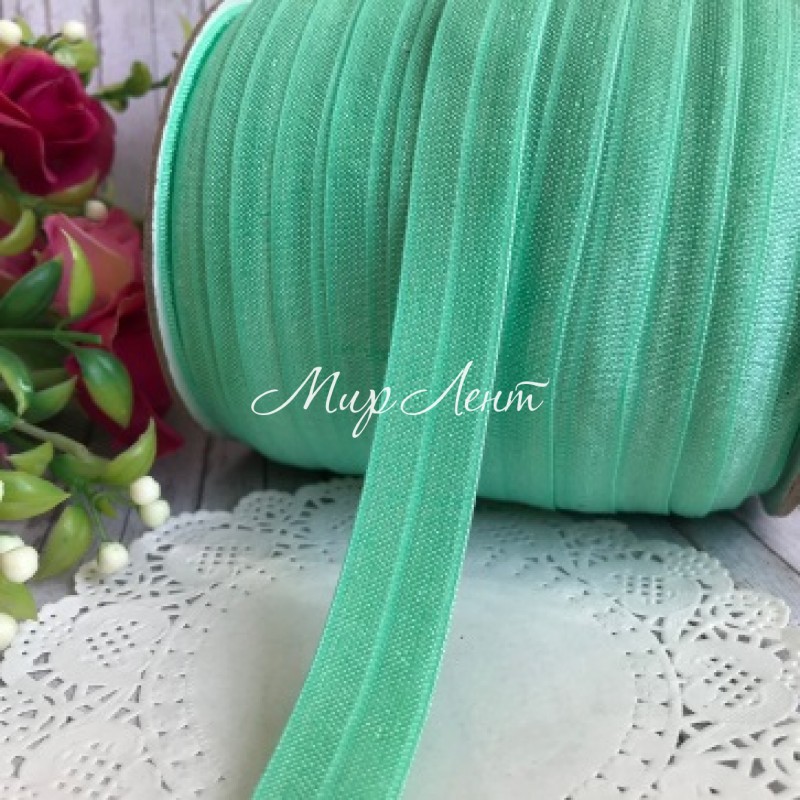 Бейка стрейчевая (shine), 1,5 см, мятный, метр