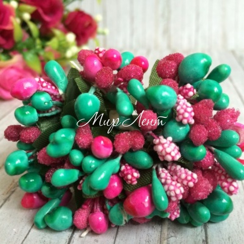 Веточка Wow, изумрудно-малиновая
