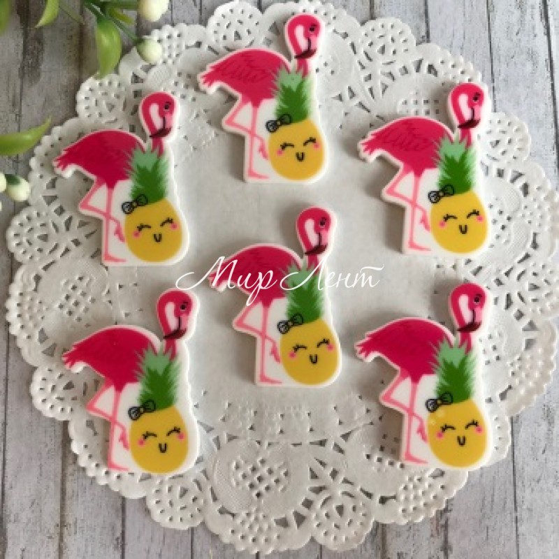 Кабошон, фламинго и ананас, 3,6 х 2 см, малиново-желтый