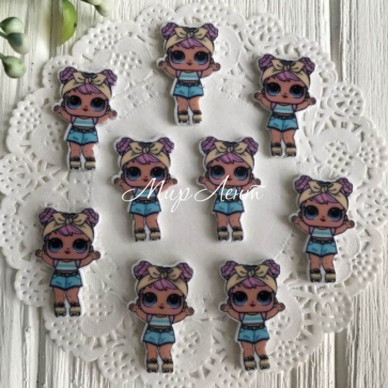 Кабошон Lol, 3 см, в голубых шортах и желтой солохе, шт.
