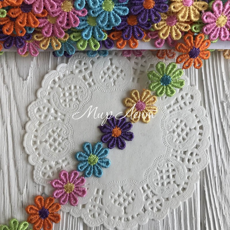 Кружево отрывное цветочек, 2,5 см, микс цветов, метр