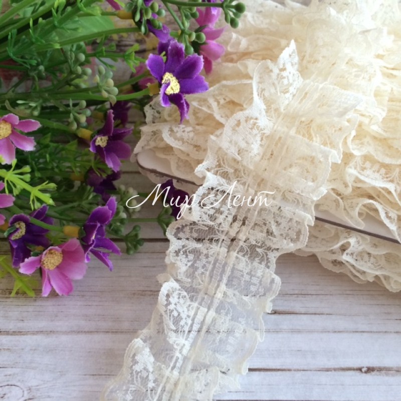 Кружево-рюша, 4 см, молочное