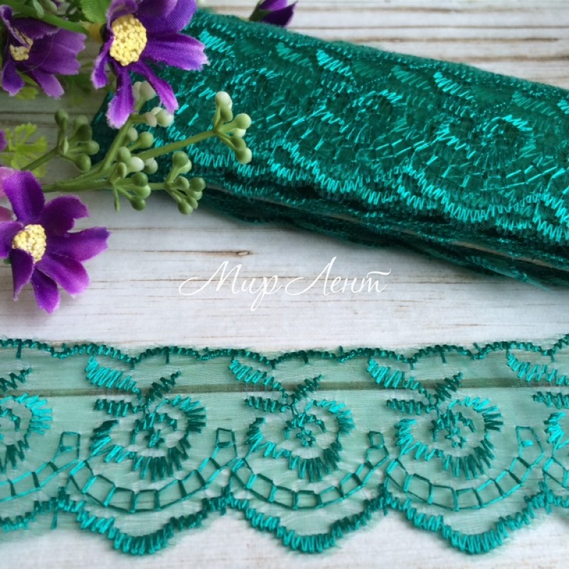 Кружево яблочко, 4,5 см, изумрудный, метр