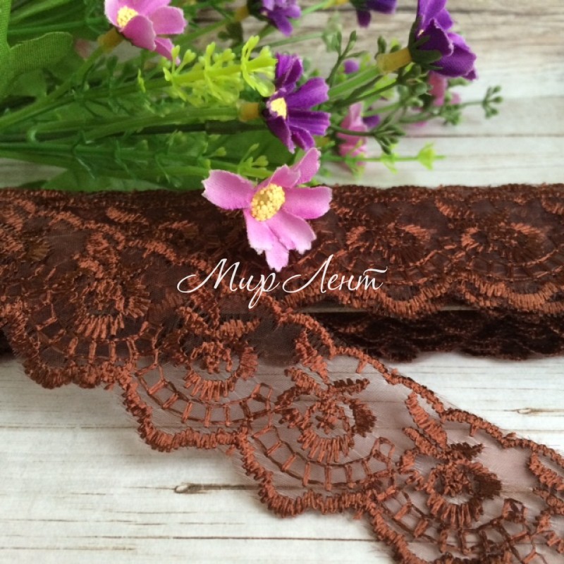 Кружево яблочко, 4,5 см, шоколадное, метр