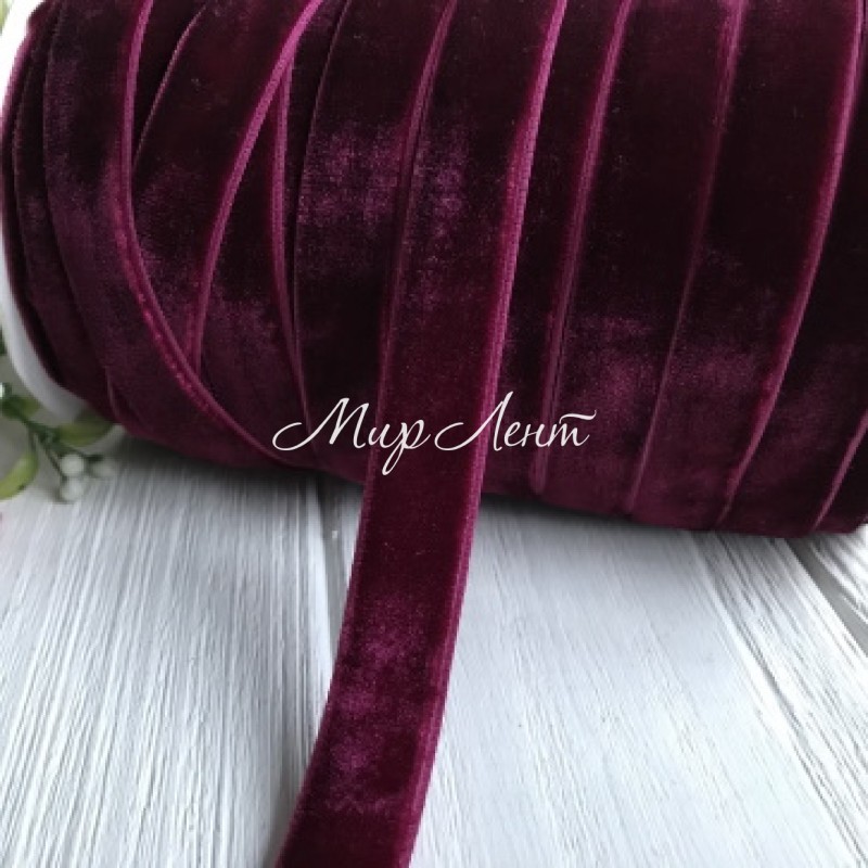 Лента велюр, 1,5 см, вишневый, метр