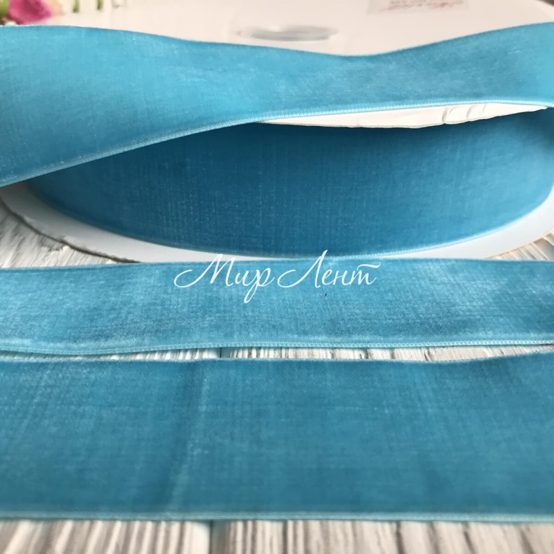Лента велюр, 4 см, светло-бирюзовый, метр