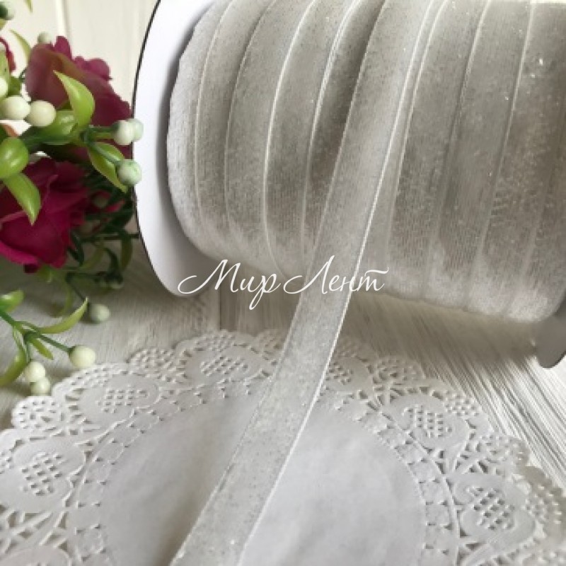 Лента велюр с люрексом, 1 см, белый перламутр, метр