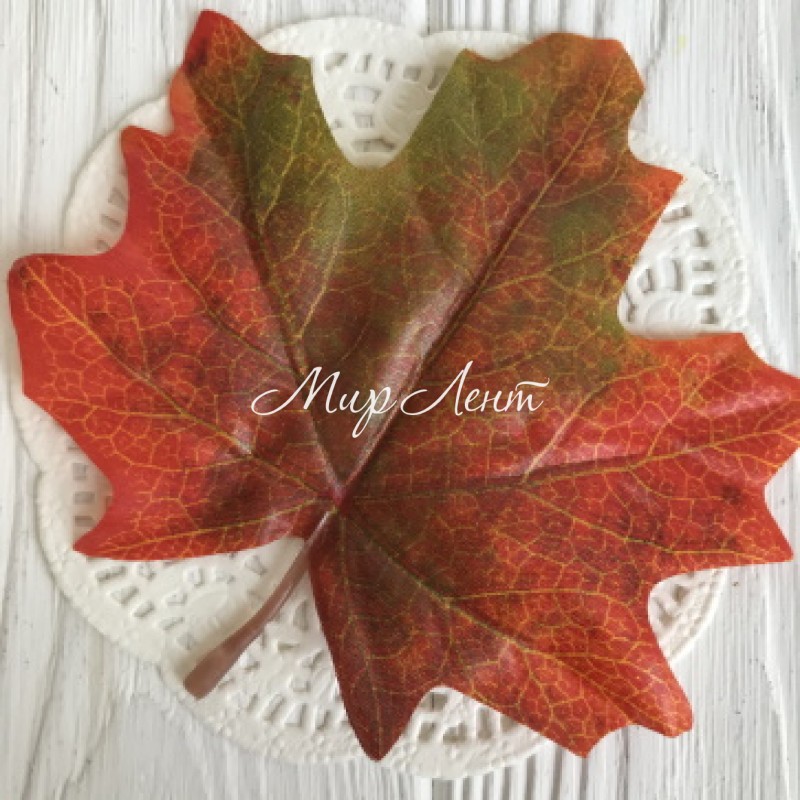 Листик клена с ножкой (средний), 11х9 см, бледно-зелено-красный, шт.