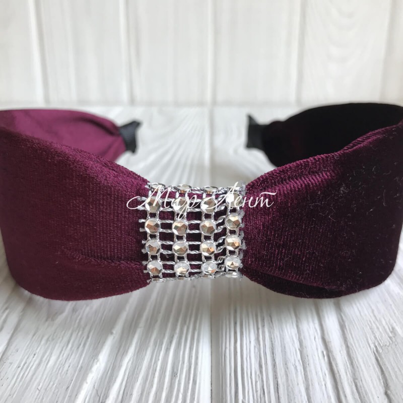 Обруч велюр с вставкой из камней, 5 см, вишневый, шт.