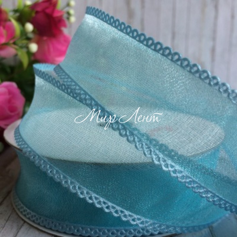 Органза с ажурным краем, 2,5 см, светло-бирюзовый