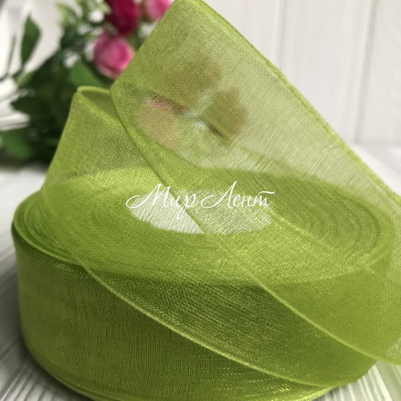 Органза 2,5 см, оливковый, метр