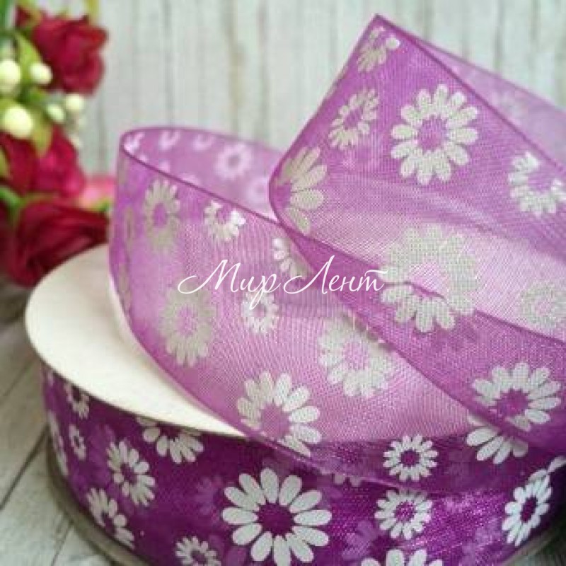 Органза 2,5 см, ромашка, фиолетовая