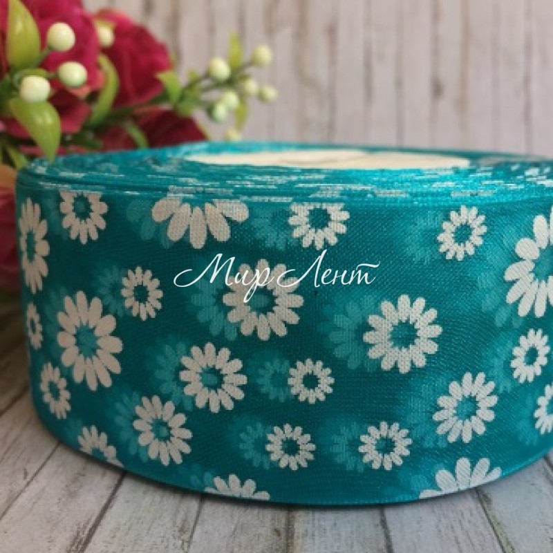 Органза 4 см, ромашка, бирюзовая