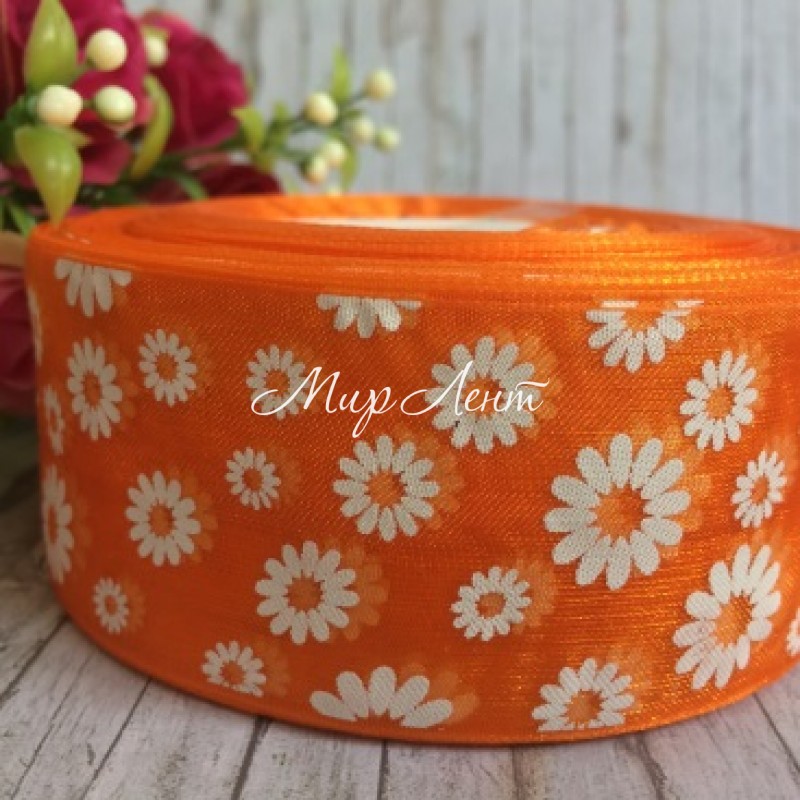 Органза 4 см, ромашка, оранжевая