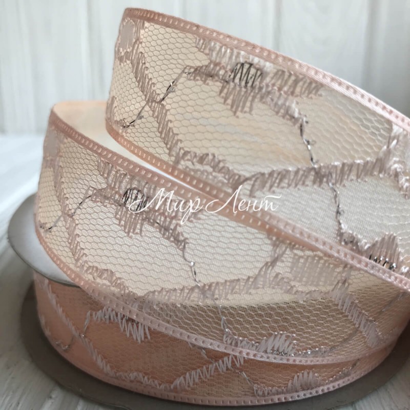 Кружевная лента сеточка, 4 см, пудровый, метр