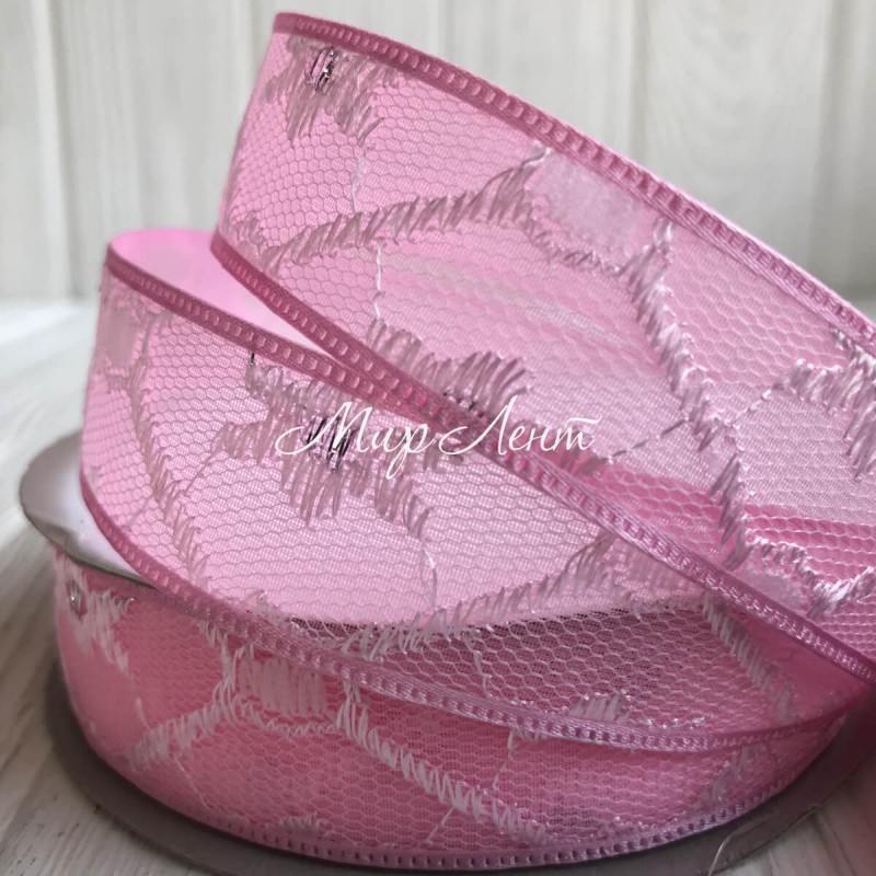 Органза с вышитым узором, 2,5 см, светло-розовый, метр