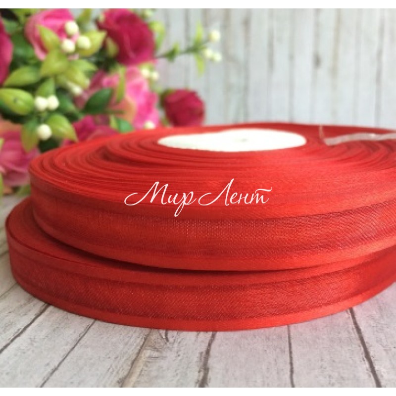 Органза с атласным кантом, 1,2 см, красный, рулон 45 м